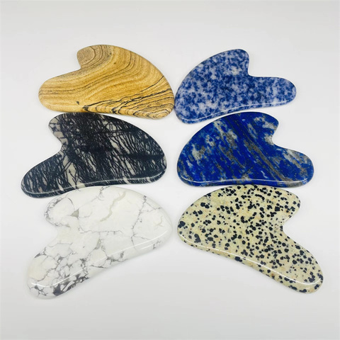 Logotipo personalizado Opalite Gua Sha Cuarzo Tabla de raspado corazón Guasha piedra cuarzo rosa Gua Sha herramienta Facial PIEDRA DE Jade Natural
