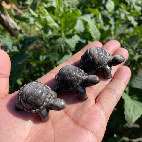 Venta al por mayor de cristal natural tallado a mano plata obsidiana tortuga animal cristal obsidiana tortugas para Decoración