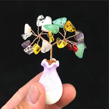 天然石材水晶树工艺品摆件手工制作生命水晶树树脂花瓶底座小饰品